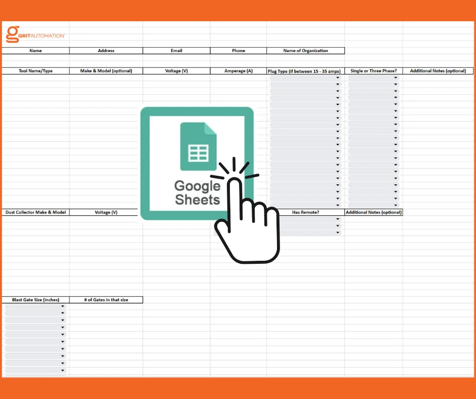When you’re ready to begin, download this form. Once you have it completed, please email it to sales@gritautomation.com. We’ll be in touch to help you take control of your shop so you don’t have to think about your dust control ever again.